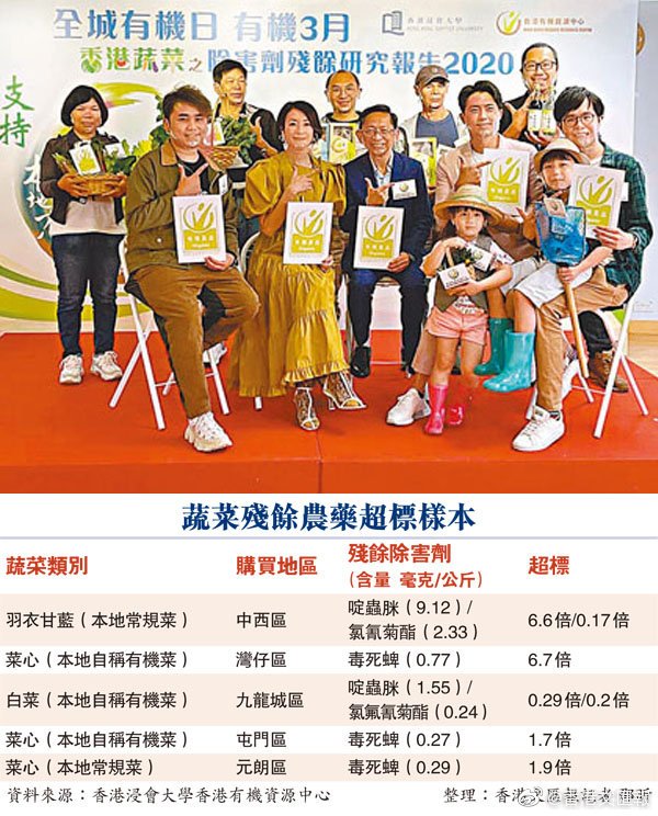 【七成蔬菜含農(nóng)藥 本地菜重災(zāi)】有機構(gòu)調(diào)查顯示,本港蔬菜的農(nóng)藥殘余問題日趨嚴重,抽樣發(fā)現(xiàn)逾七成蔬菜樣本含有除害劑殘余,近一成的除害劑殘留超標。自稱本地農(nóng)場出產(chǎn)的蔬菜成為超標“重災(zāi)區(qū)”,一款有機菜心及一款羽衣甘藍,被驗出農(nóng)藥超標近7倍。