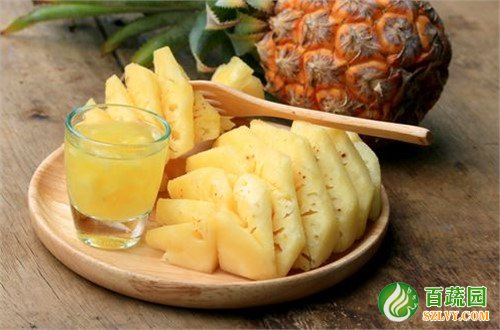 菠蘿汁有降溫的作用,并能有效預防支氣管炎,但是發燒最好不要食用。經醫學研究,自古以來,人類就常常憑借菠蘿中含有的菠蘿蛋白酶來疏緩嗓子疼和咳嗽的癥狀。菠蘿皮中富含菠蘿酶,有豐富的藥用價值,據國外專家20多年實驗,長期食用菠蘿皮,心腦血管,糖尿病發病率顯著降低,并有一定的抗癌效果。尚含一種酵素,可以分解蛋白質。