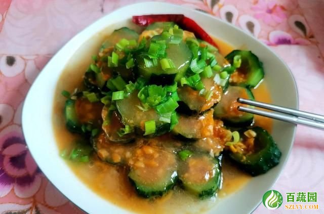 (6)將蒸熟的黃瓜取出,澆上調味汁,撒上蔥花即可。