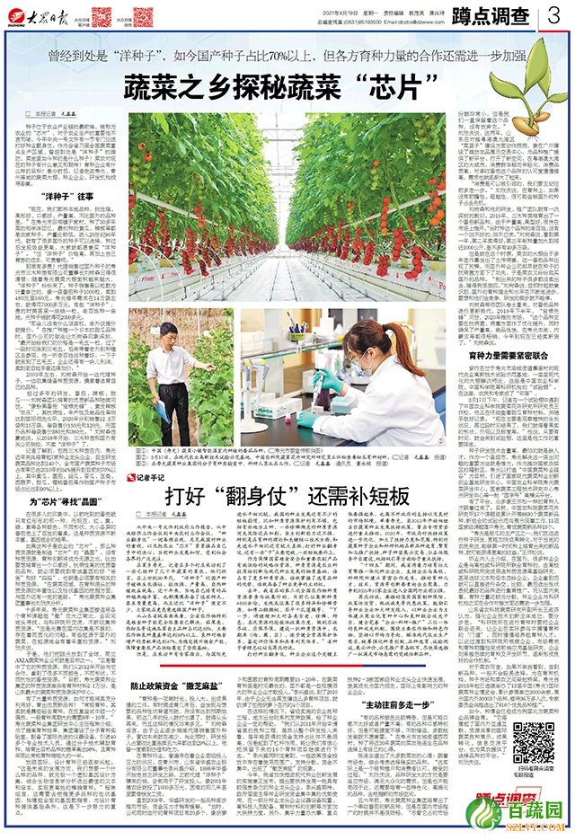據深圳農產品配送了解種子位于農業產業鏈的最前端,被稱為農業的“芯片”,對于農業生產的重要性不言而喻,今年中央一號文件有一節專門論述打好種業翻身仗。作為全省乃至全國蔬菜重點生產區域、曾經到處是“洋種子”的濰坊,菜地里如今種的是什么種子?菜農對現在的種子有什么意見和期待?育種企業有什么樣的目標?春分前后,記者走進壽光、青州等地的蔬菜大棚、種業企業、研發機構找尋答案。