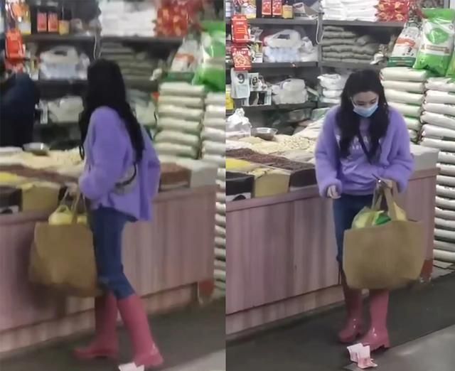 張柏芝菜市場被偶遇,穿毛衣踩雨靴買蔬菜,掉錢沒反應太可愛了
